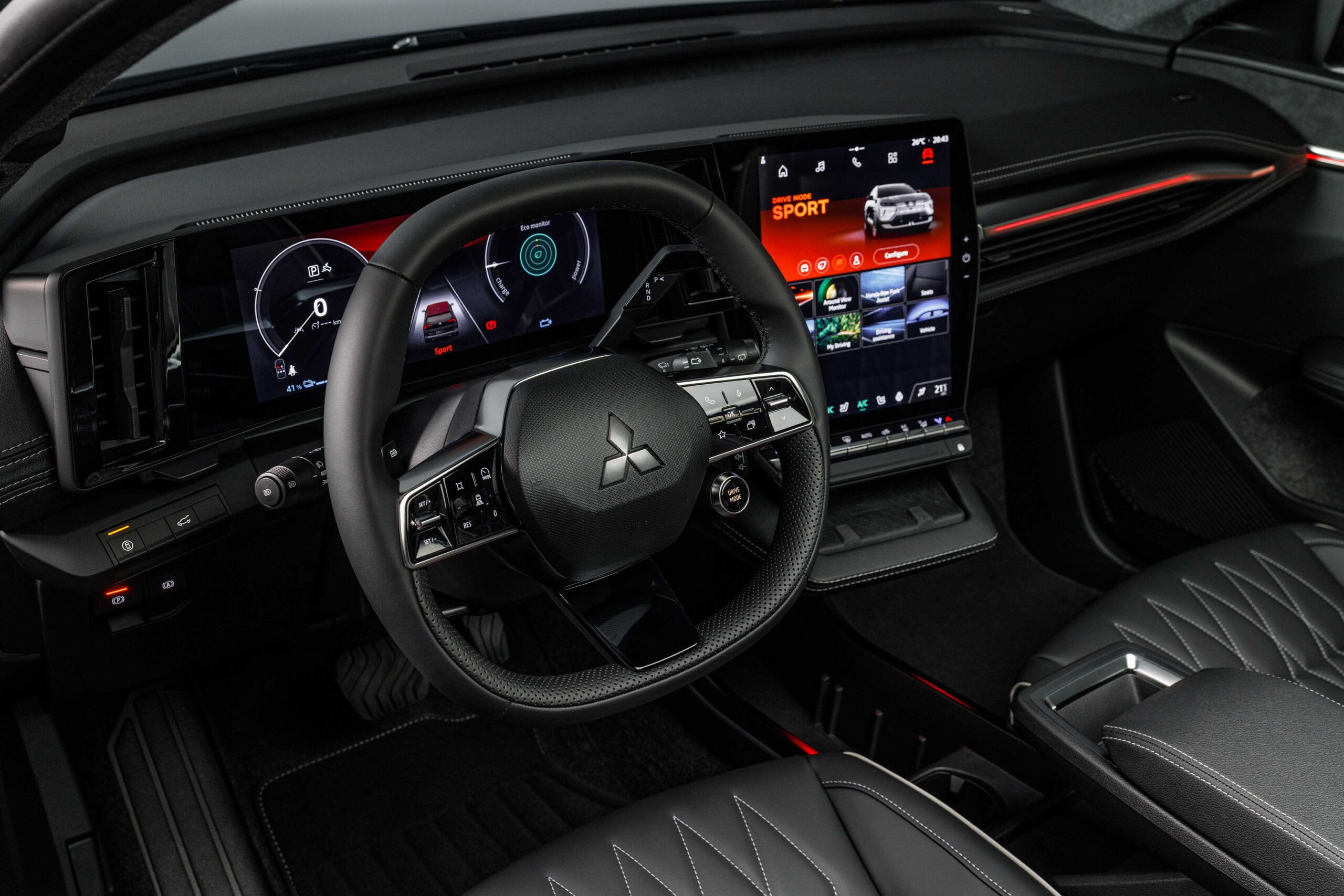 Aan de voorzijde prijkt een frisse interpretatie van Mitsubishi Motors Dynamic Shield-gezicht. Het next-gen design biedt een driedimensionale, hexagonale oppervlaktestructuur die zowel kracht als verfijning uitstraalt. Het hexagon-motief aan de achterzijde is zó vormgegeven dat dit het DNA van het merk uitdrukt en de auto direct in de familie plaatst. Zijn dynamische, wendbare houding is gebouwd op het CMF-EV-platform; de afmetingen – 4.470 mm lang, 1.860 mm breed en 1.570 mm hoog – versterken zijn aanwezigheid.